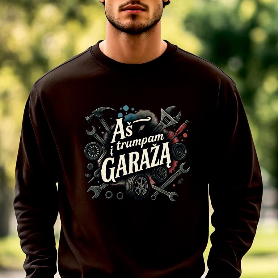 Juodos spalvos džemperis Aš trumpam į garažą naujas dizainas