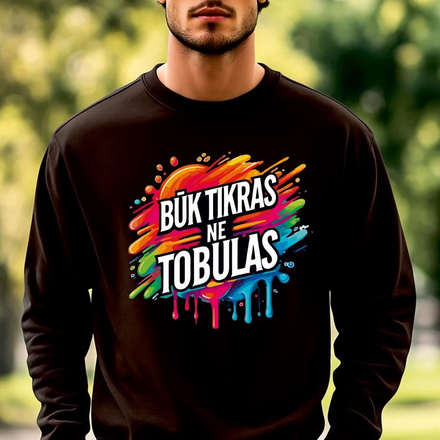 Juodos spalvos džemperis Būk tikras ne tobulas