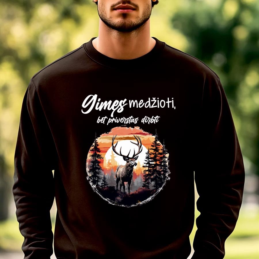 Juodos spalvos džemperis Gimęs medžioti bet priverstas dirbti spalvotas