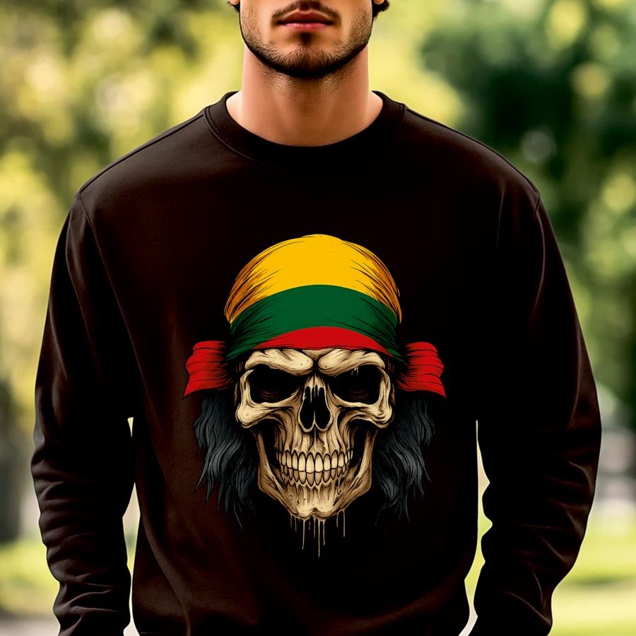 Juodos spalvos džemperis Kaukuolė su Lietuvos vėliava