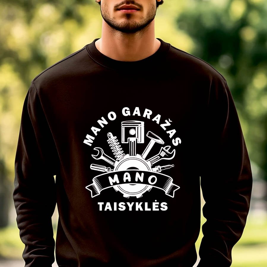 Juodos spalvos džemperis Mano garažas mano taisyklės