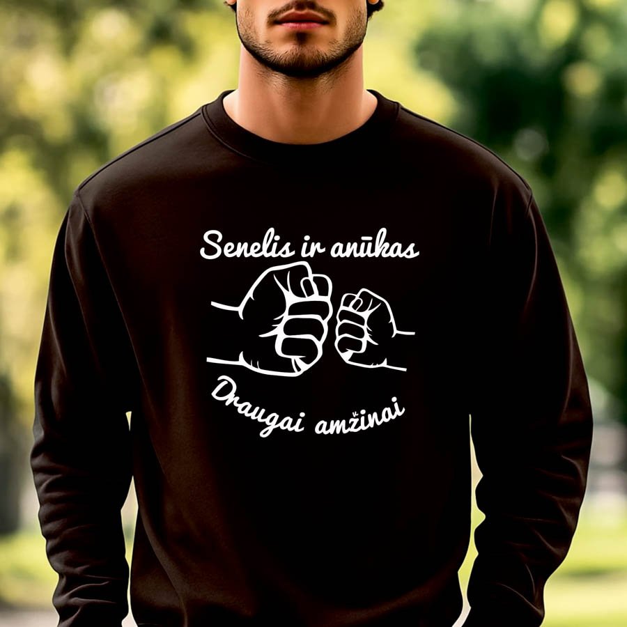 Juodos spalvos džemperis Senelis ir anūkas draugai amžinai